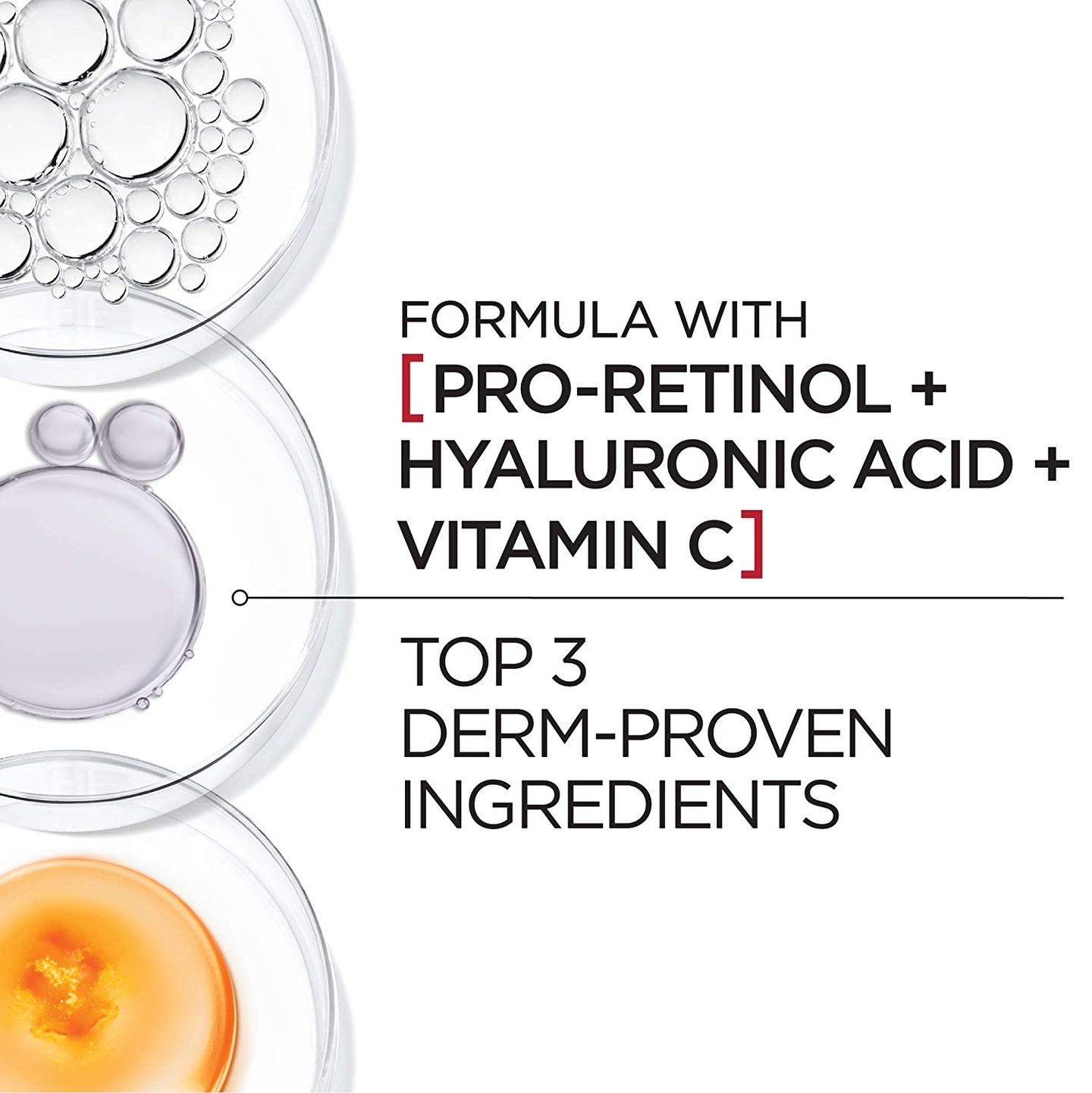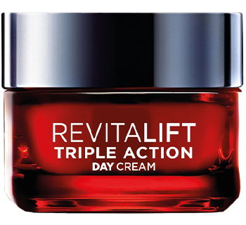 Revitalift Triple Action Day Cream is an anti-aging daily moisturizer formulated with three powerful skin-active ingredients: Pro-Retinol, Vitamin C, and Hyaluronic Acid to visibly reduce wrinkles, firm, and brighten skin in 1 week. After use, skin feels softer, smoother, and plumped with hydration.